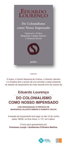 (CNC, 6 Junho 2014): Do Colonialismo como nosso Impensado, com organização e prefácio de Margarida Calafate Ribeiro e Roberto Vecchi, será lançado no Centro Nacional de Cultura no dia 12 de Junho às 18:30. O livro será apresentado por Francisco Louçã e Guilherme d' Oliveira Martins.