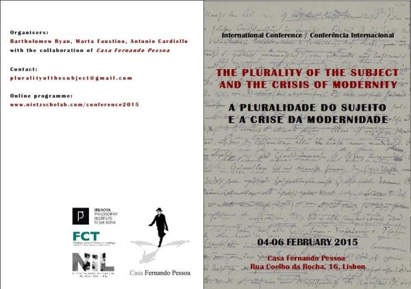 2 de Fevereiro de 2015: De 4 a 6 de Fevereiro de 2015, na Casa Fernando Pessoa em Lisboa, realiza-se a conferência internacional A PLURALIDADE DO SUJEITO E A CRISE DA MODERNIDADE, organizada pelo IFILNOVA – Instituto de Filosofia da Nova. Serão três dias de diálogo e de reflexão.